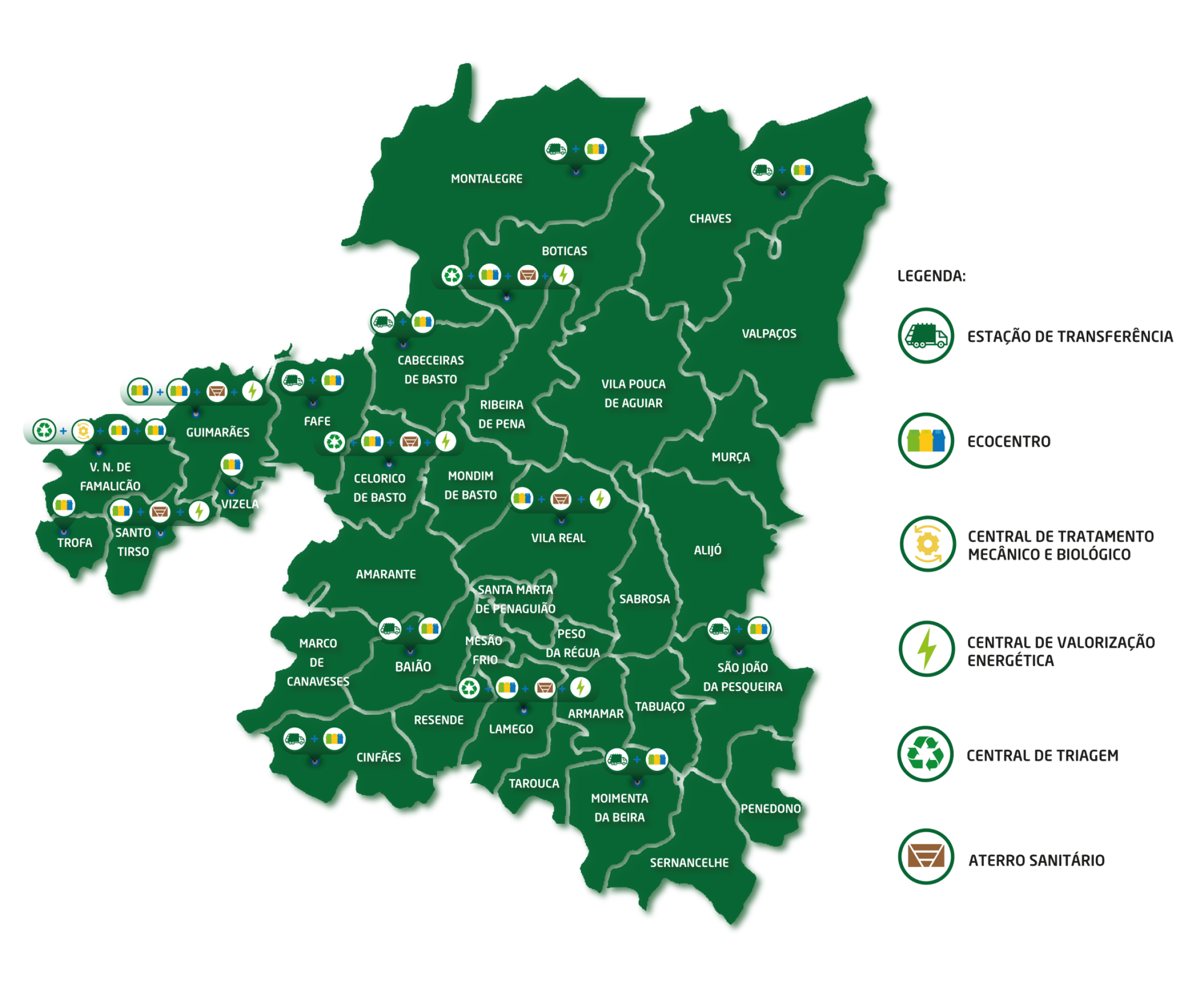 Procure no mapa o Ecocentro ou Ecoparque que pretende contactar e irá encontrar os contactos de cada instalação.